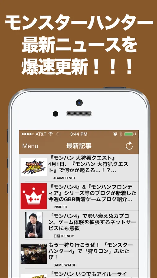自動で幅広いモンハン4ニュースサイトから最新情報を取得するので、見逃しなし!