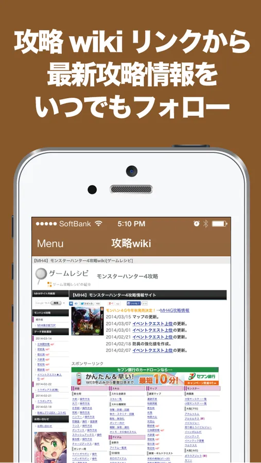 1タップの超簡単操作で最新のモンハン4ニュースがサクサク閲覧可能!