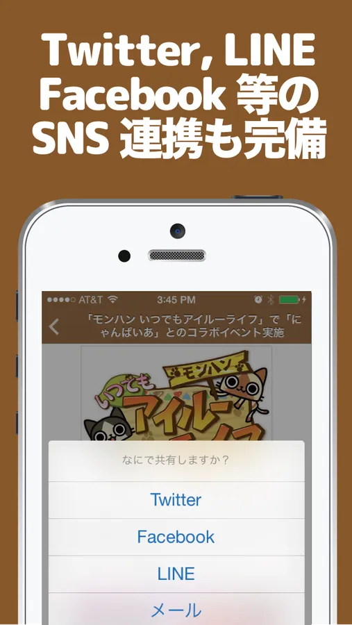 Twitter, Facebook, LINE等のソーシャル連携も万全!どんどんシェアしよう!