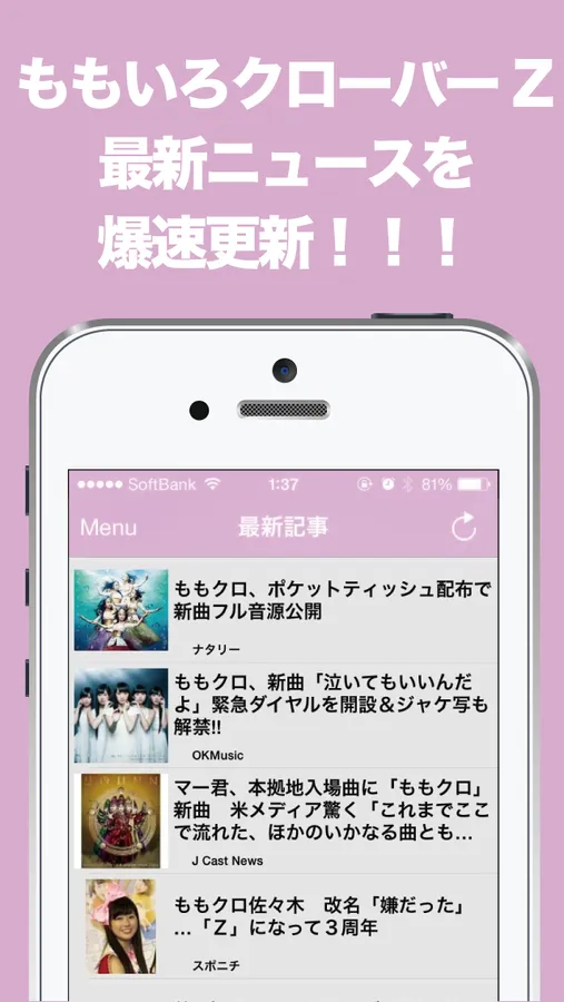 1タップの超簡単操作で最新のももクロニュースがサクサク閲覧可能!