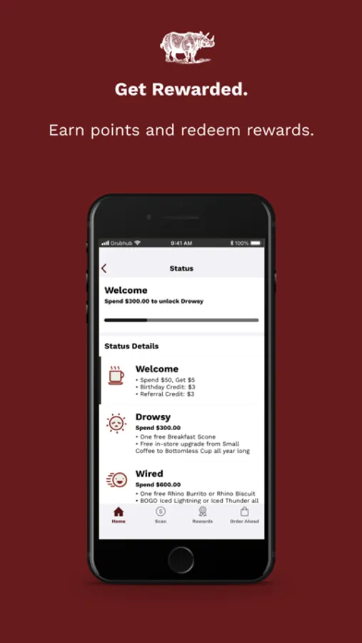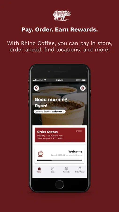 • Referral credit: tell your friends about Rhino Coffee and, when they download the app, you both get rewarded