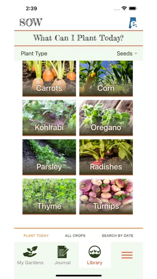 The “SOW – A Planting Companion” app is designed to tell you the optimum time to plant crops in your home garden. Choose your location and start planting. Tap the photo of a crop to see more information: