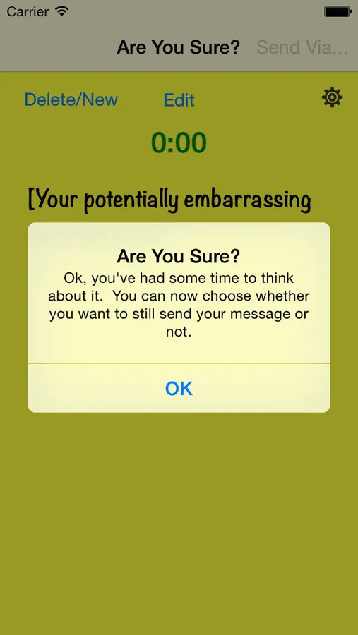 AreYouSure gives you some time to think about it before you post, tweet, text or email something you might later regret. We've got your back ;-)