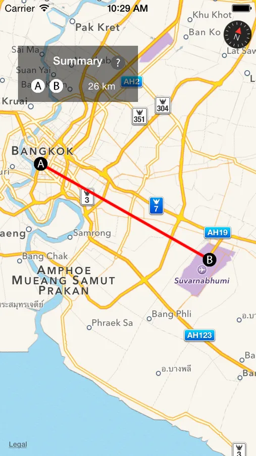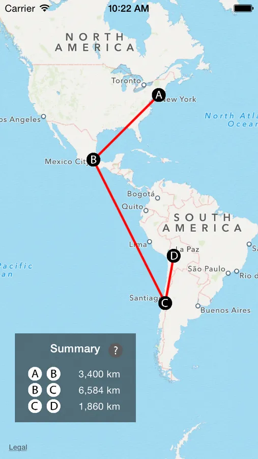 MapPoint is the simplest tool to measure the distance between two points on iOS map.
