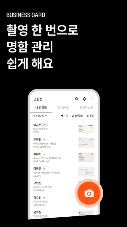 - 받은 명함 촬영해주시면 입력은 리멤버가 해드려요.