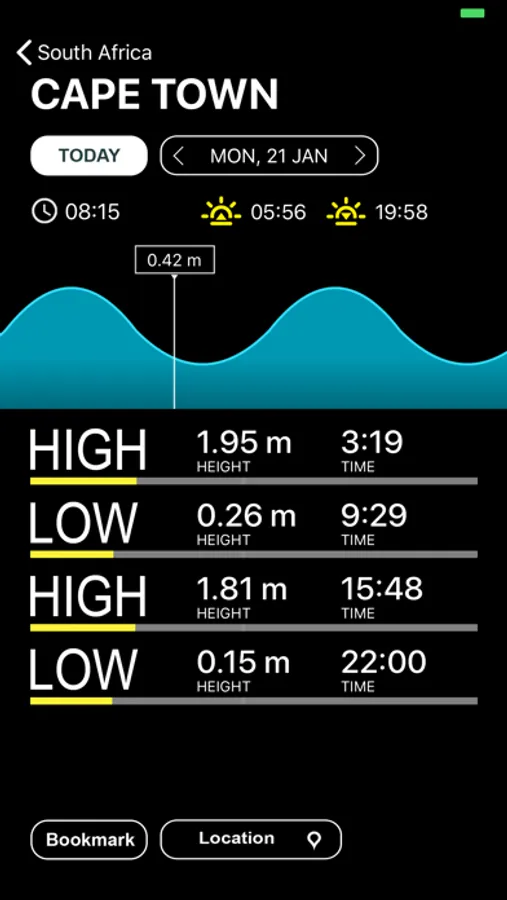 Recreational adventures involving the coastal waters in South Africa are something most people enjoy. In order to make the most out of those moments by the coast you need to use the South Africa Tides app. It will tell you the information you need to know in order to fish better, catch ideal surf waves, enjoy some boating, or walk along the beach.
