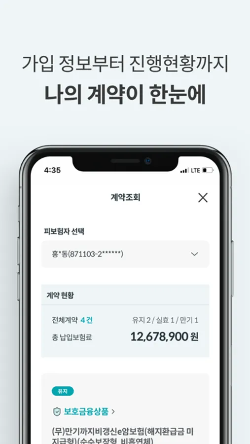 보험 가입부터 계약 조회 관리, 보험금 청구 모두 앱 하나로!