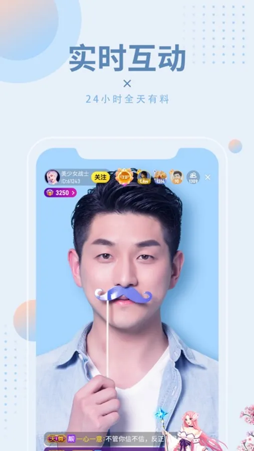 美女帅哥视频直播间里有众多秀场礼物,趣味礼物,高档礼物,浪漫礼物,活动礼物,这里有你想送主播的礼物,送礼动画效果酷炫,赏心悦目。