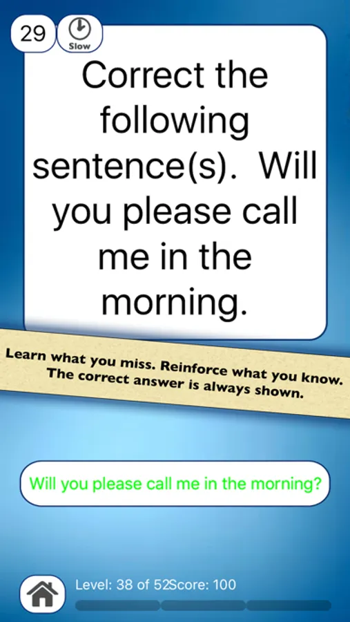 This English Language Grammar Homeschooling Game lets you practice identifying different punctuation marks and how to properly use them. Your student will gain confidence in placing commas, semicolons, and quotation marks, learning skills that are typically part of the curriculum for kids and students in 3rd through 8th grade. The user will also get to know different word types and how to identify and use them as well as how to identify the different parts of speech and parts of a sentence.
