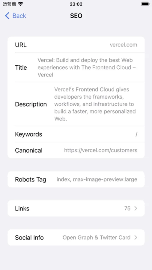 - SEO analysis (including TDK, internal and external links, OpenGraph, etc.)