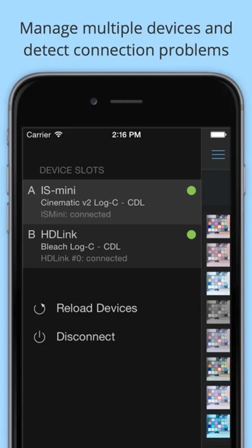 LG Pro Remote allows to remotely apply preset color grades, switch devices and apply different options such as "show original image", "bypass color" or "false color".