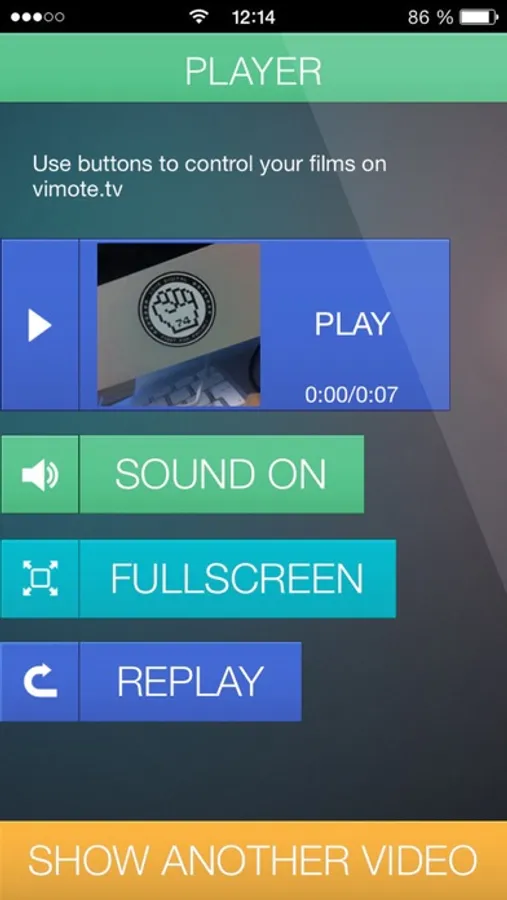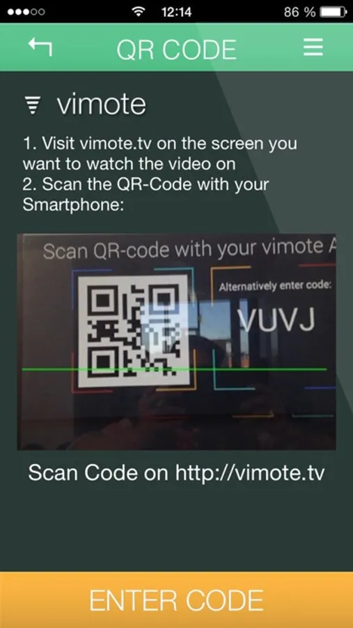 How it works: open www.vimote.tv on your browser where you want to show your video, scan or enter code with your vimote app, control and beam your video with your smartphone.