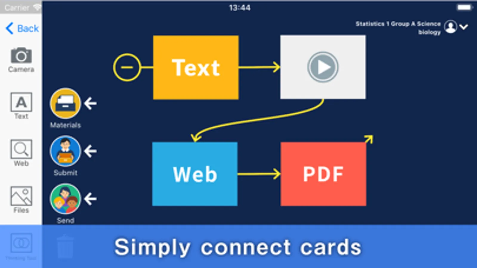 Draw lines with your finger to connect the cards in the order of your choosing. In an instant you have collected your ideas in one place.