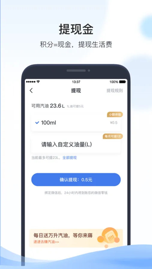 【步步向钱】:获取步数,换取汽油,汽油可以兑换成零钱提现到账,同时鼓励大家多多运动。