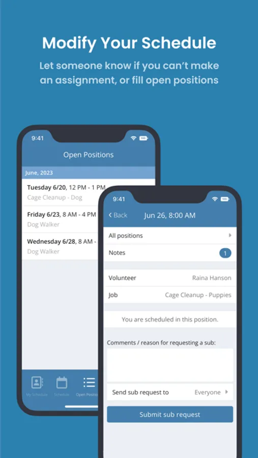 App for volunteers using Rotunda Software's Volunteer Scheduler Pro.