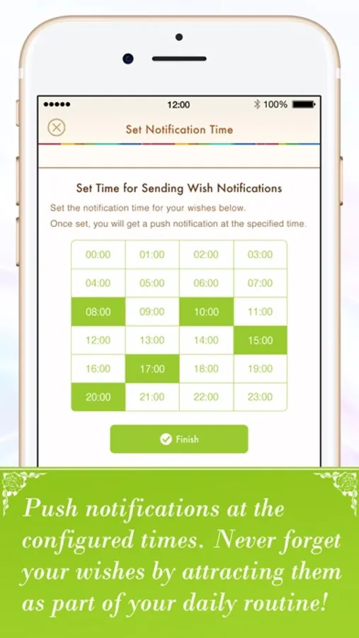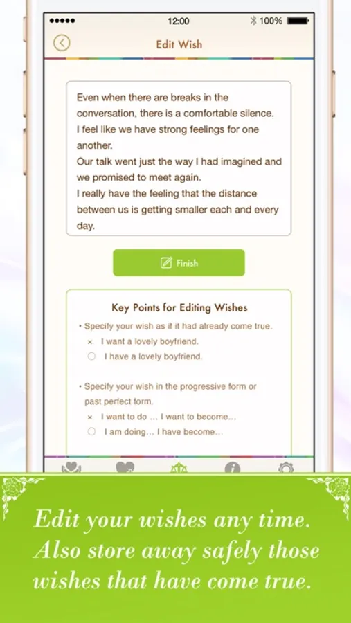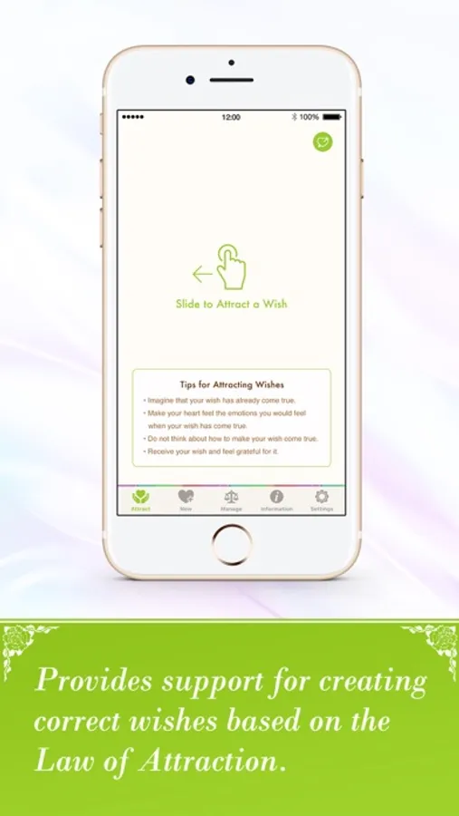 Choose a combination of samples from nearly 200 categorized "proper wishes" to create your own "wish". Using push notification, it's easy to make Attraction a habit. Your "wish" will surely be granted!