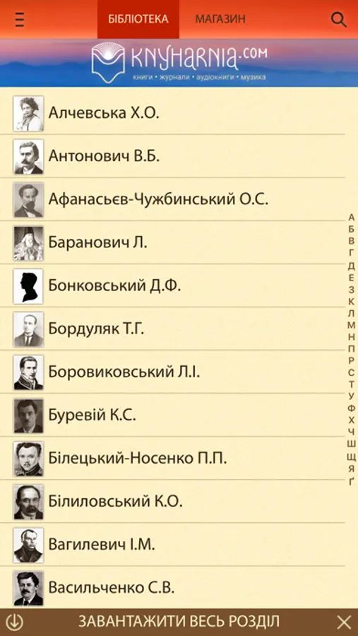 Тепер не потрібно шукати книги в інтернеті: встановивши цю програму, ви завжди будете мати під рукою величезний збірник творів кращих українських письменників. Певна річ, у списку зі 100 авторів ви знайдете Шевченка, Вороного, Сковороду, Лесю Українку, Франка, Кобилянську та багатьох інших.