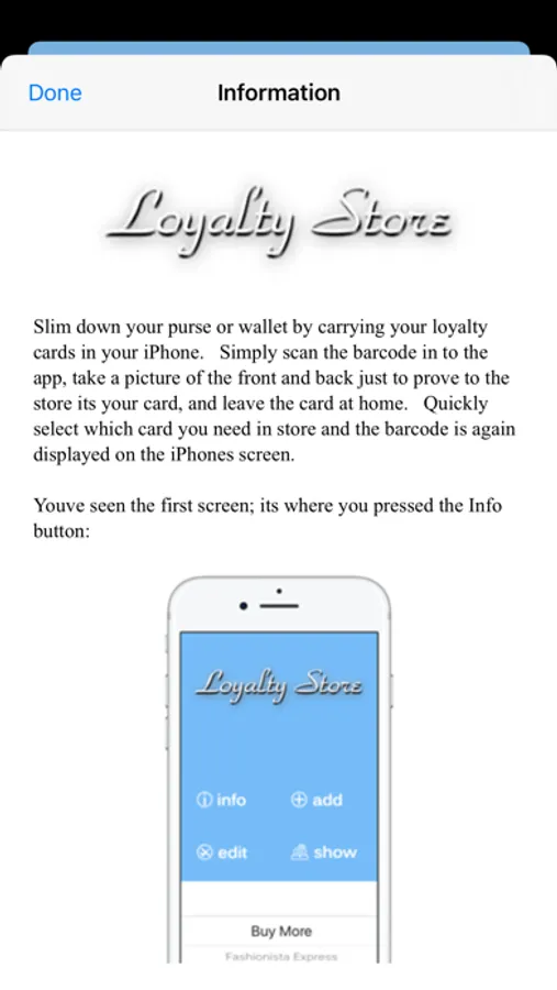 Loyalty Store only stores your cards, and doesn't require any personal details from you. The cards details you enter are not shared with any other app, person, or company out with your own iCloud account and devices.