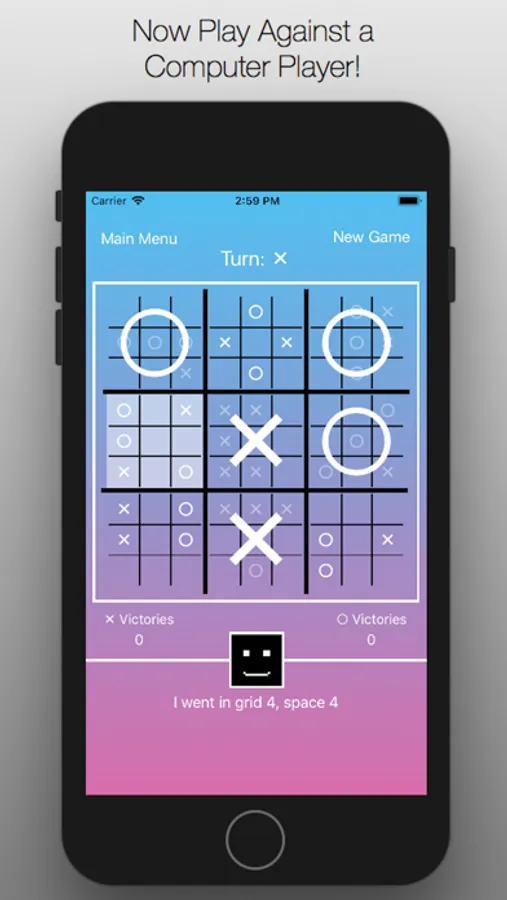 To win a grid, you must get three of your symbols in a row.