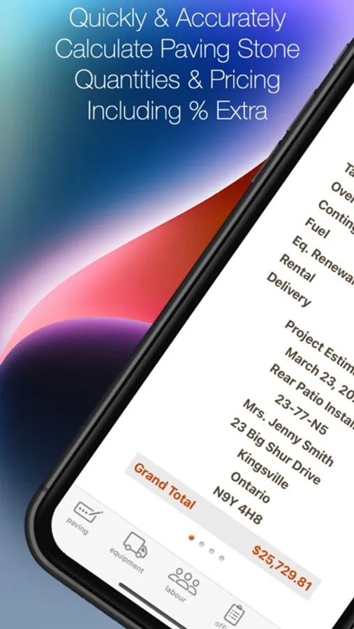 *Can now estimate entire paving project including; paving stone, gravel base, sand levelling course, geotextile fabric, labour, equipment, overhead, taxes etc. This app rocks!