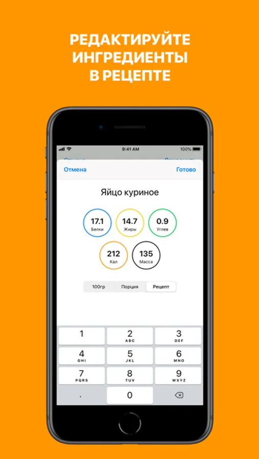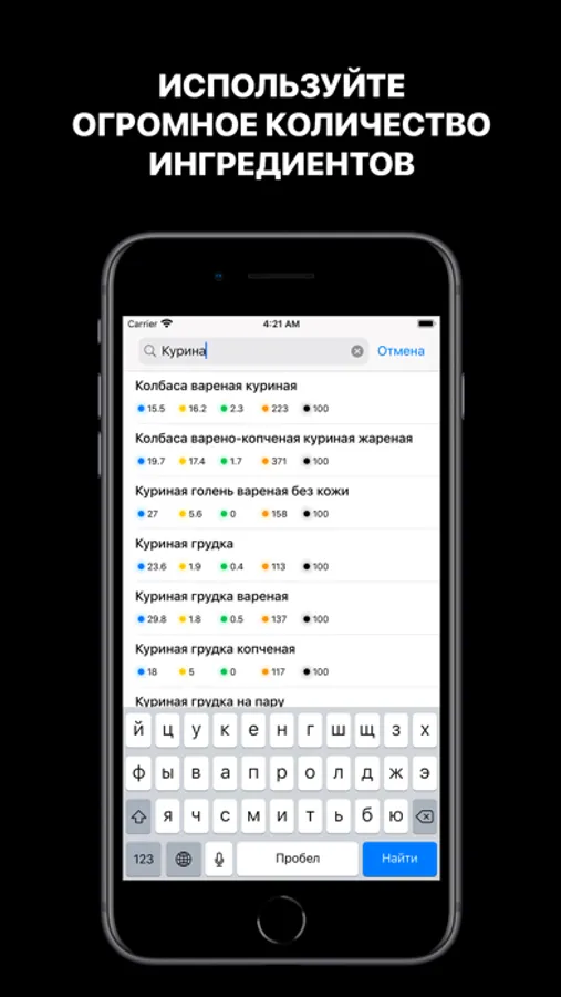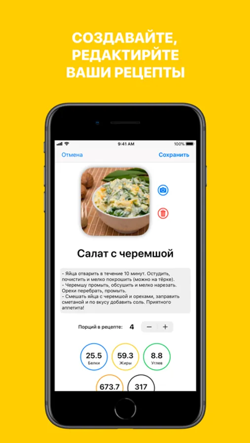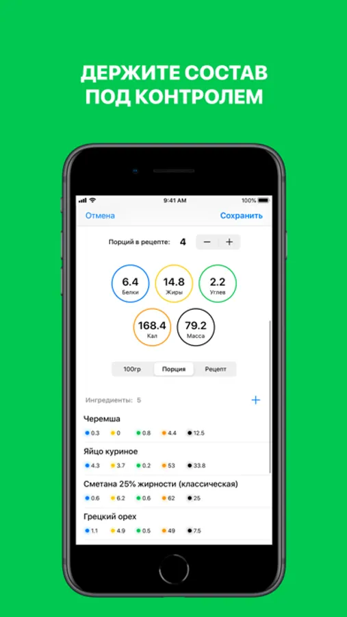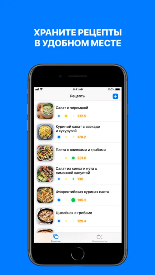 Рецепты создавать просто! А ещё проще - считать их калорийность, так как в Care это происходит автоматически! Просто добавляйте нужные ингредиенты из огромного списка!