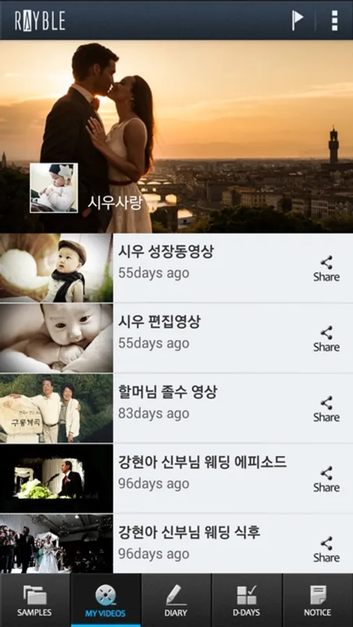 영상이 업로드 되면, 홈 화면 My videos에 상위 리스트 자동 추가