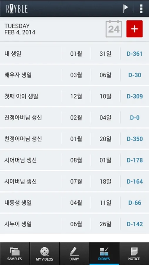 D-day list(카운트 및 D-DAY 상위 항목 자동 노출)