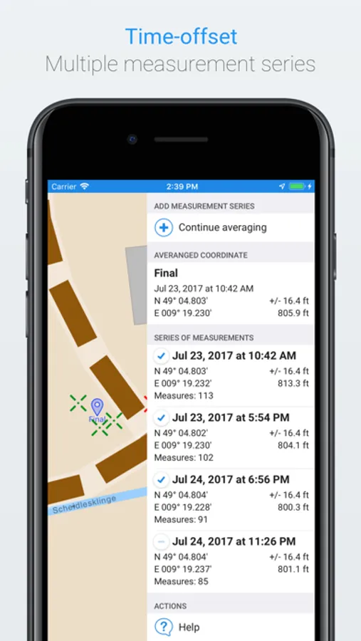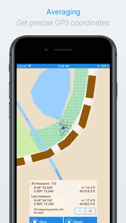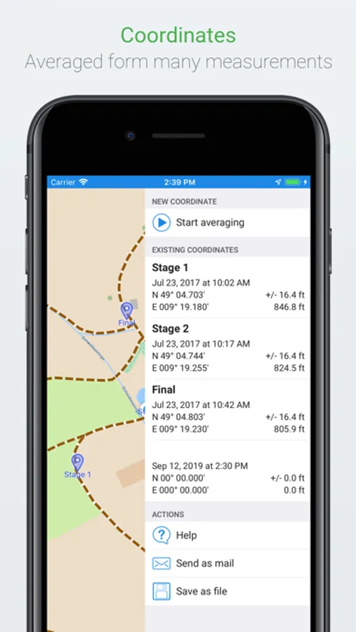 With GPS Averaging you can get precise GPS coordinates. From many measurements an average value is formed, which is much more accurate than a single snapshot.