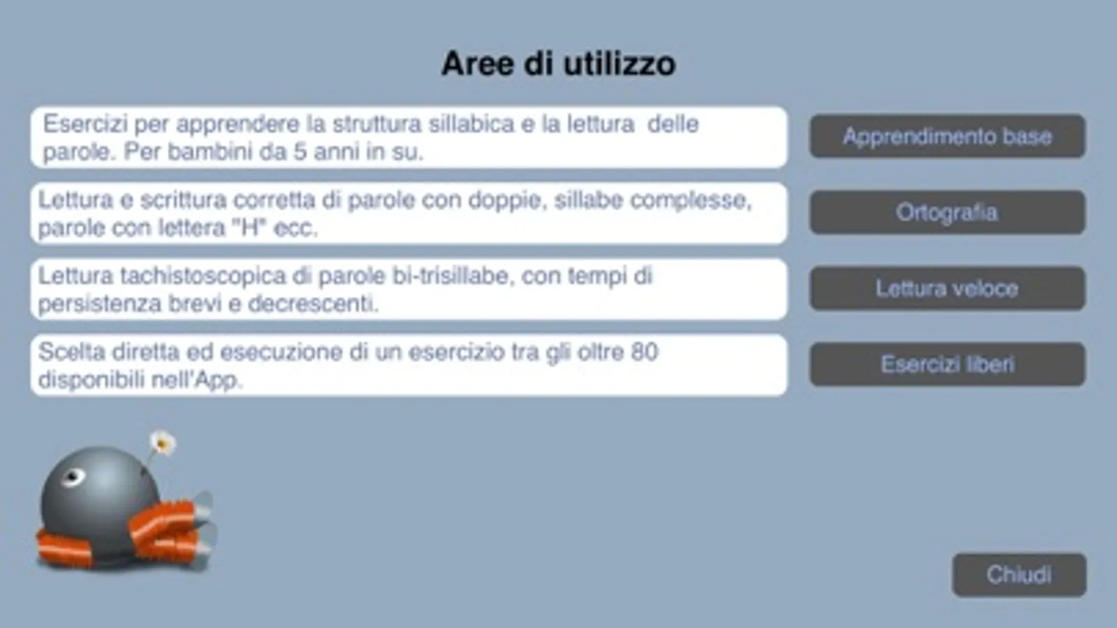 L'App favorisce il rapido superamento della "fase alfabetica" durante l'apprendimento delle basi della lettura.