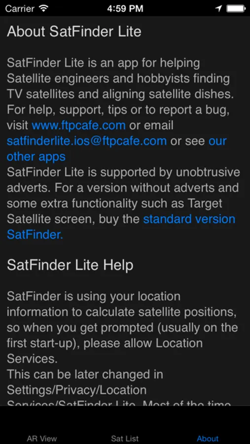 SatFinder Lite is a tool for finding TV satellites and aligning satellite dishes.