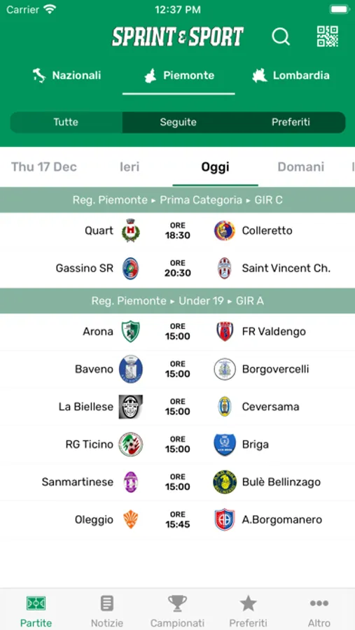 SPRINT E SPORT App ovvero il calcio giovanile e dilettantistico di Piemonte, Lombardia e Valle d'Aosta sempre con te perché parla di te