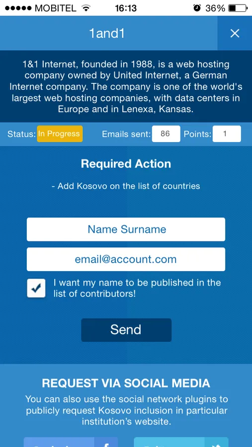 Kosovo is recognized by over half of the members of the United Nations and is a member of both the IMF and World Bank. Internet properties from LinkedIn to Twitter are updating their platforms, menus and options to include Kosovo and making it possible for everyone to take full advantage of all the opportunities available via the Internet.