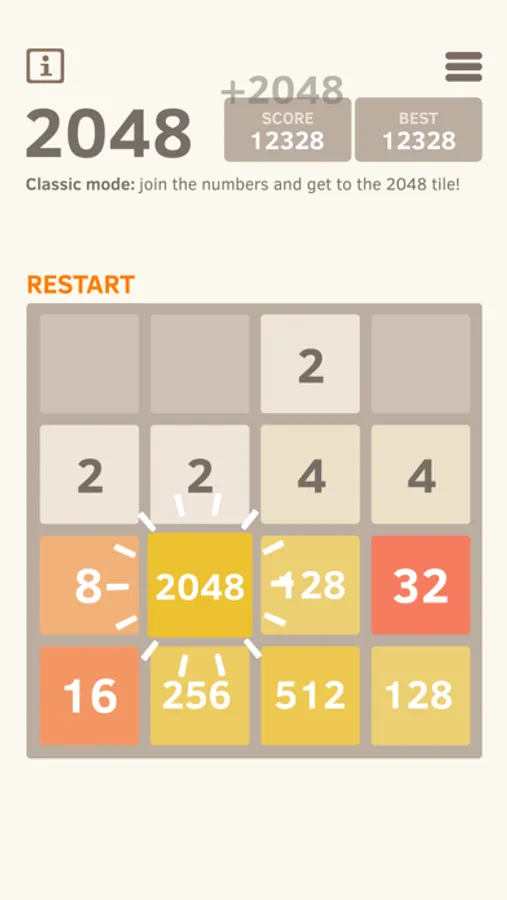 The 2048 app is fun, addictive and very simple number puzzle game!