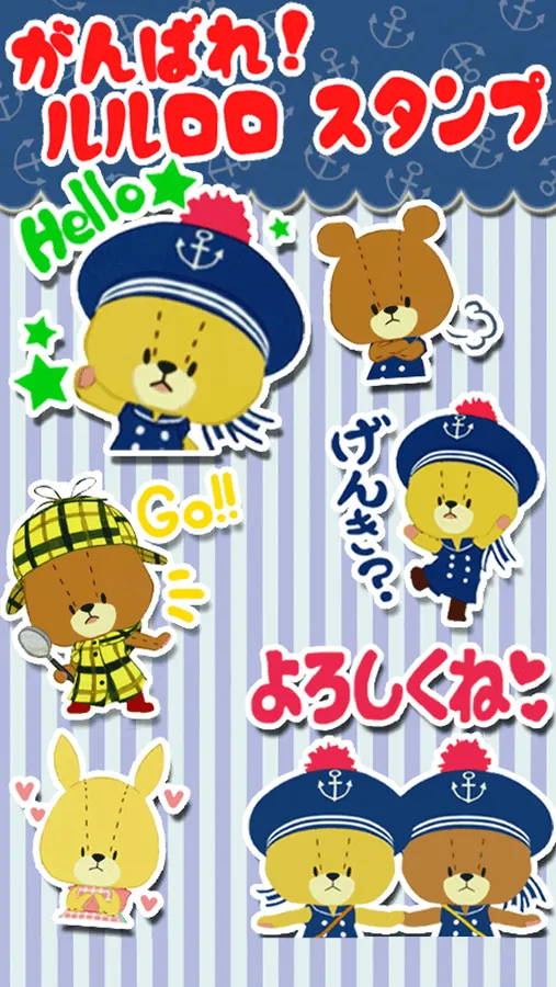 大ヒット絵本シリーズ「くまのがっこう」シリーズから生まれ、NHK教育TVで放映された 大人気のアニメ「がんばれ!ルルロロ」が、スタンプになりました!!