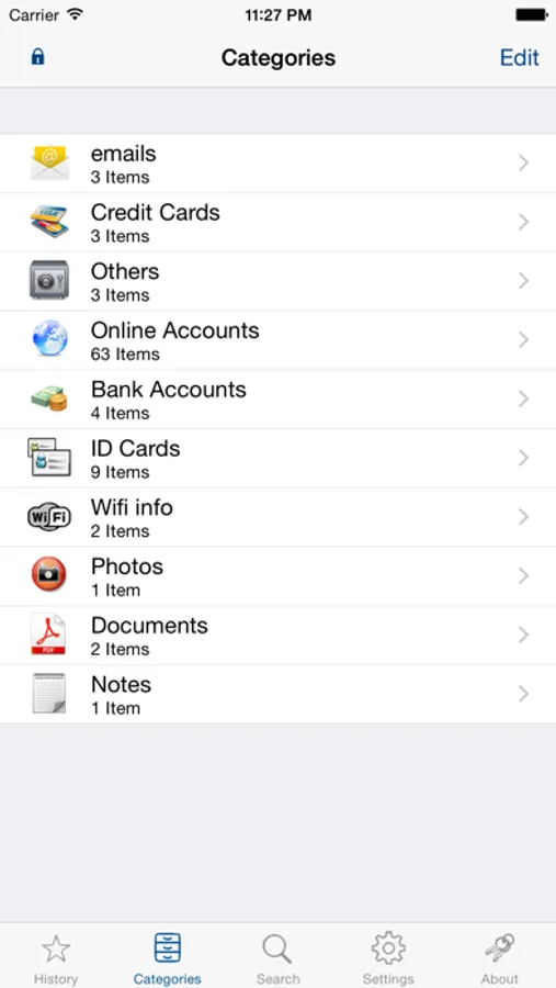 - Organize your information in a hierarchy of Categories, Items, and Fields.