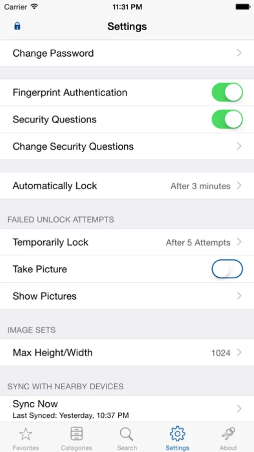 - Lots of additional features including Auto-Lock, Secure Copy/Paste, temporary lock out on failed login attempts, Reset password using optional Security Questions, and more.
