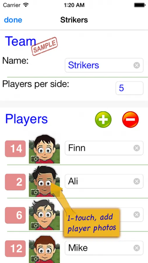 1-touch player pictures - Capture player pictures with the app's integrated camera function. 1-touch, point and click.