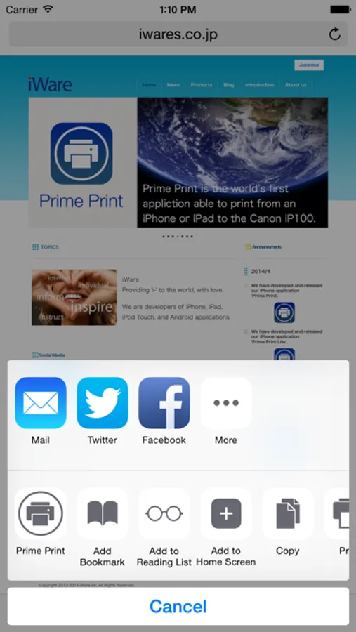 ** Prime Print is the world’s first appliction able to print from an iPhone or iPad to the Canon iP100. Highly recommended for iP100 users! (A print server is required.)