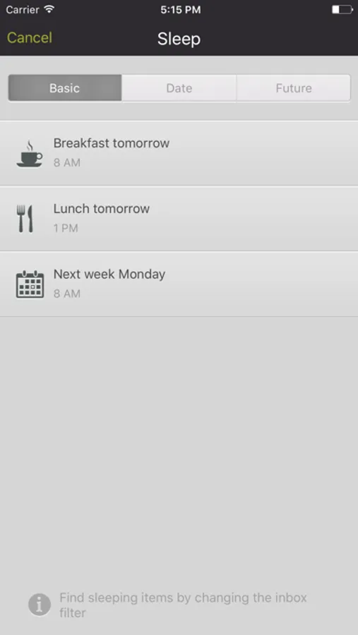 • Task scheduling options that allow you to manage your tasks based on a schedule that works for you. Postpone a task until sometime in the future, whether it’s tomorrow during your morning coffee, or next week after your big status meeting.