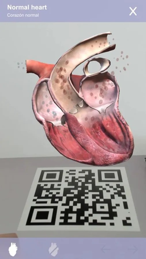 Once the app is launched on a mobile device, the user only needs to scan the QR codes that appear in the book in order to visualise different dynamic 3D images of the heart and its diseases. Thanks to this app, veterinary surgeons will be able to visualise each disease in three dimensions, which will give them a better understanding of its physiopathology and, as a result, of the aims of the treatment.