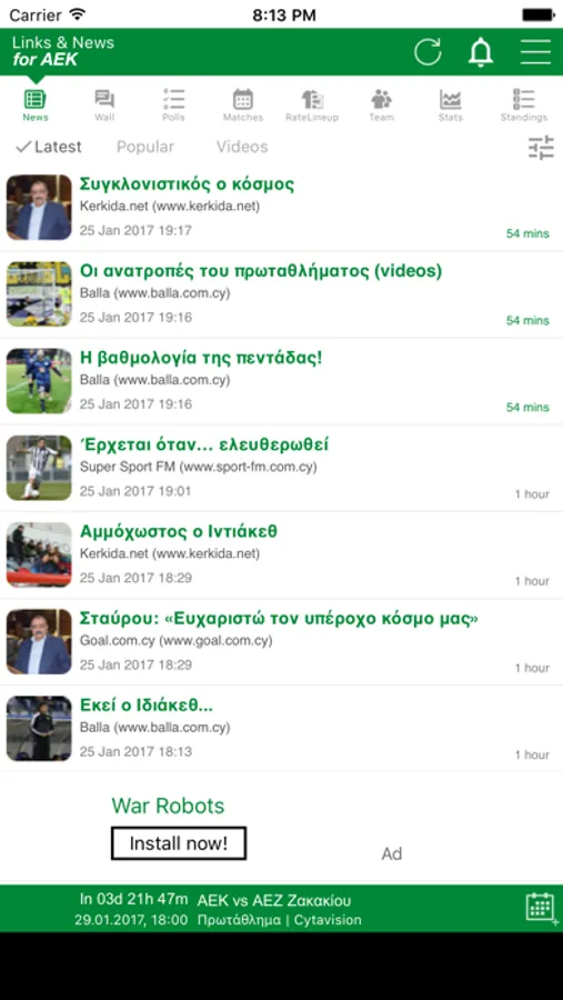 Get informed for all Aek news and articles links gathered from major sports websites in Cyprus