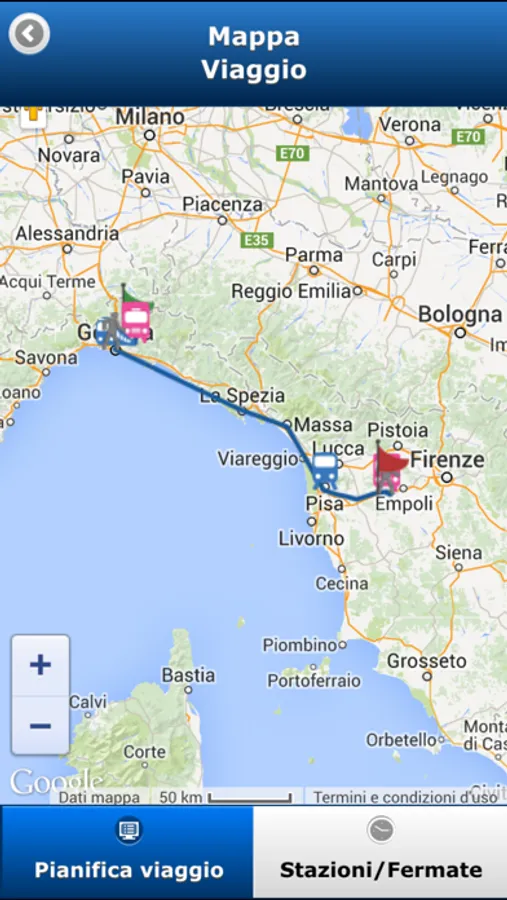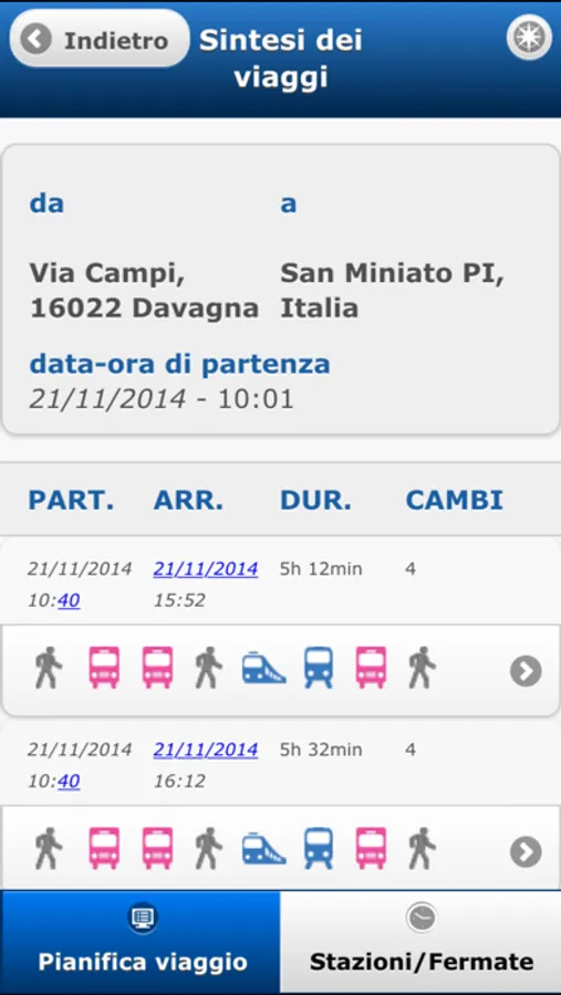 - cercare percorsi inserendo una località di partenza e di arrivo mediante un'interfaccia guidata e di cercare le fermate