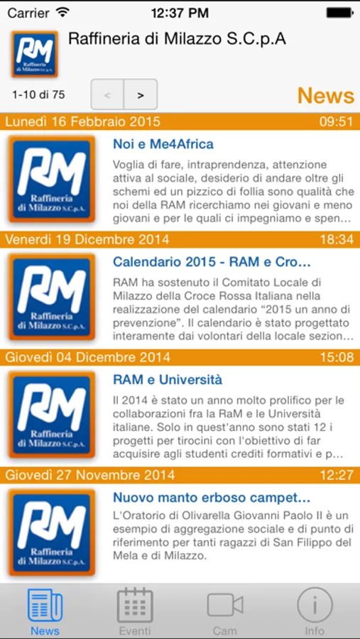 Applicazione ufficiale della raffineria di Milazzo