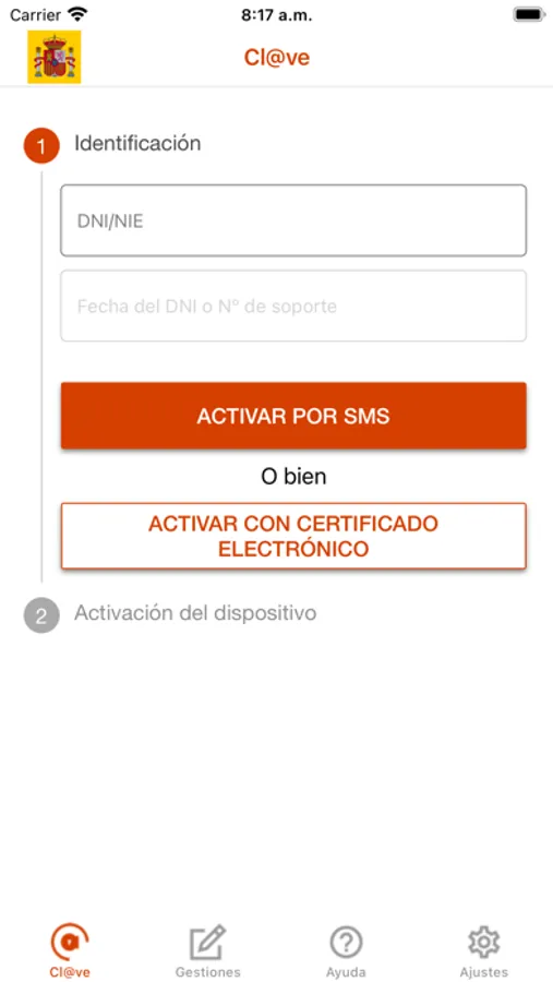 Si está registrado en Cl@ve, podrá activar este dispositivo con su DNI/NIE mediante un SMS o con su certificado electrónico.