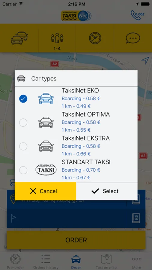 TaksiNet приложение автоматически определит Ваше местонахождение, рассчитает прелиминарную стоимость и расстояние поездки. Достаточно нажать кнопку "Заказать" и Ваш заказ будет передан ближайшему такси.