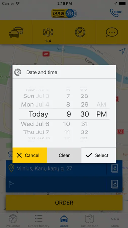 Atvykstantį taksi automobilį bei savo kelionės eigą galėsite stebėti žemėlapyje „gyvai“.