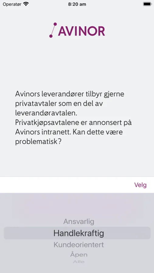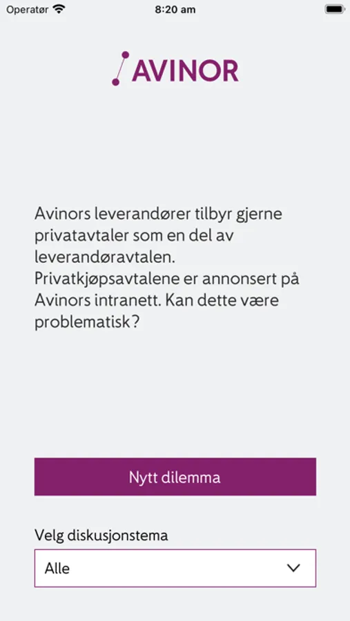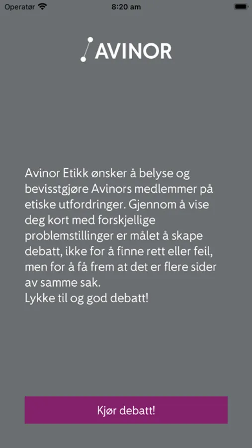 «Avinor Etikk» ønsker å belyse og bevisstgjøre Avinors medlemmer på etiske utfordringer. Gjennom å vise deg kort med forskjellige problemstillinger er målet å skape debatt, ikke for å finne rett og feil, men for å få frem at det er flere sider av en sak.