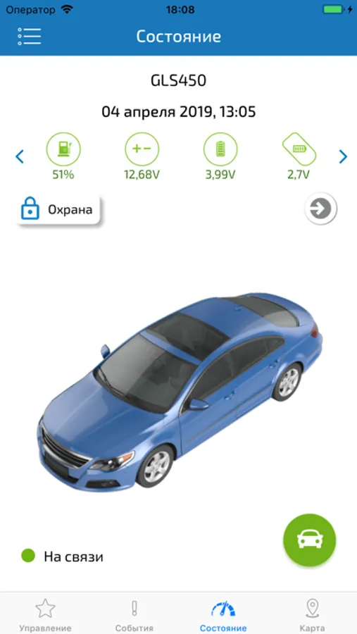 - получать информацию о текущем состоянии вашего автомобиля (режим охраны, состояние дверей, зажигания, багажника, капота, уровня топлива, заряда аккумулятора и т.д.) в реальном времени;