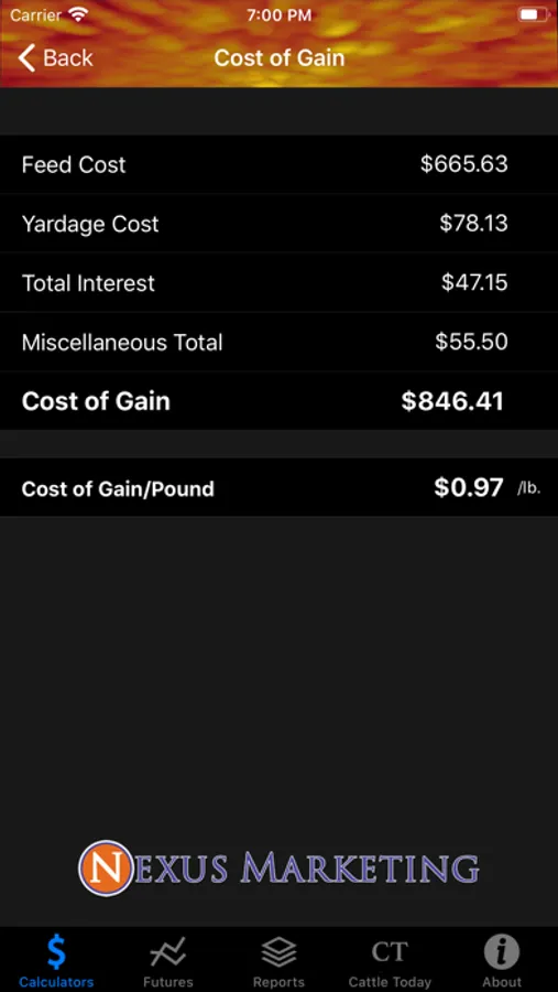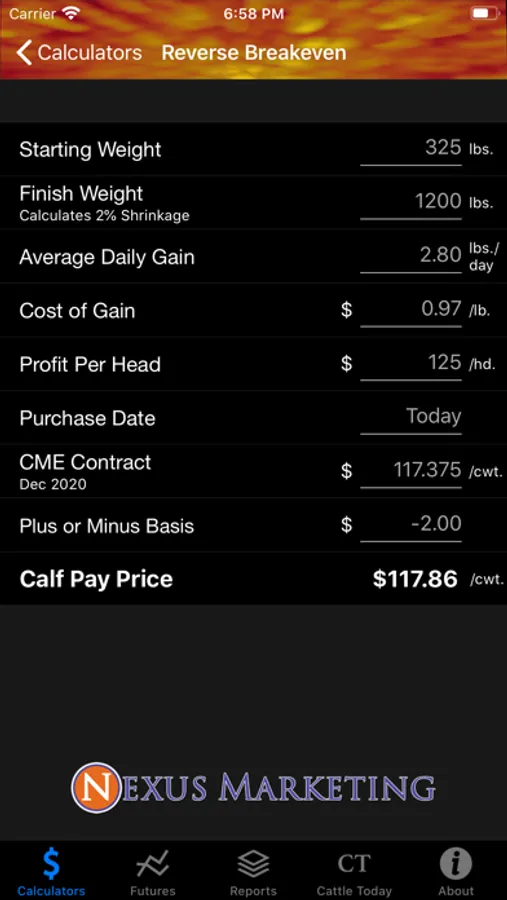 +++The Nexus Cattle Calculator remembers info from previous sessions so you don’t have to re-enter numbers for fields that haven’t changed. This app gives you the dollars and cents facts and helps get you where you want your cattle operation to go.