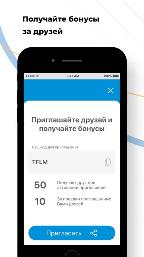 Приглашайте друзей по реферальному коду и получайте бонусы за их поездки. Используйте бонусы для оплаты такси А Такси.